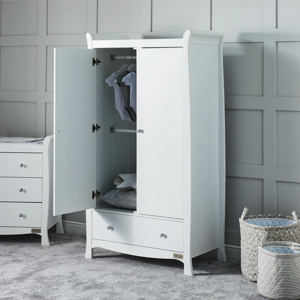 A beautiful addition to your nursery that compliments the Snowdon range. Includes a full-sized interior that means you don’t need to compromise on space. It also includes two hanging rails and a lower drawer, offering lots of storage for all of little one’s outfits. Large doors are supported by soft close hinges.